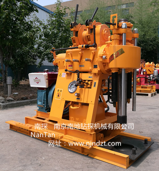 XY-200型鉆機集合了目前市場流行的XY-1、XY-1B、XY-1A等小型鉆機的主要功能和特點設計而成的。即采用XY-1的油壓自動給進,XY-1B的大模數齒輪傳動系統,XY-1A的寬范圍轉速的較大扭矩輕型回轉鉆機。 為使本機的適用性更廣泛,滿足不同用戶的需求,推出移機型XY-200(YJ)型鉆機(帶移機功能)、增加了水泵(不帶移機) 的XY-200-1型和帶移機帶水泵功能的XY-200-2型鉆機。鉆機、柴油機(或電動機)安裝在同一底座上。鉆進深度可達200米。