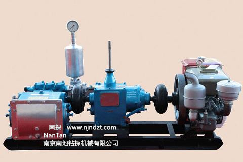 主要特點:1.具有可滿足大、小口徑鉆機所需的八擋流量,流量調節范圍大,參數選擇合理。可與XY-4巖心鉆機和XY-5型鉆機配套使用??蓾M足不同口徑、不同孔深、不同地質巖心鉆探的需要。 2.活塞為碗形加尼龍靠背的自封式S型聚胺脂橡膠活塞,大大提高使用壽命。 3.拉桿上設有五道防塵密封圈,以防止液力端的泥漿帶入動力端和動力端潤滑油濾。經多次生產試驗證明,密封可靠,性能良好。致使齒輪延長使用壽命。 4.進排水閥采用鋼球。并在閥蓋上設有減聲橡膠墊,以減少沖擊噪聲。 5.壓力表采用BY-1型抗震壓力表,壽命長。 6.結構緊湊,造型美觀。 7.可拆性好,便于維修和搬遷。