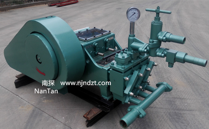 BWS-200/10型泥漿泵,該泵因除可輸送清水,水泥漿外,還可輸送含5mm以下粒徑的砂漿,主要可用于水庫、河道的土壩,土石壩的壩體、壩基的裂縫、松散層、溶洞進行壓力灌漿,旋噴注漿,靜壓注漿,錨桿灌注水泥砂漿,遂道支護灌注水泥砂漿,建筑工程,高速公路,鐵路的地基加固注漿,也可用于其它水利施工建設及建筑行業施工中輸送石灰漿、水泥漿、粘土砂漿、水泥砂漿等固液相混合漿液,還可用于與地質巖芯1000米鉆機作沖擊回轉鉆進配套用泵。