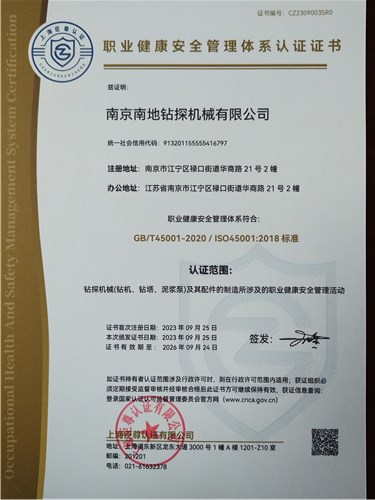 企業(yè)通過ISO9001:2015質(zhì)量管理體系認證、ISO14001:2015環(huán)境管理體系認證、ISO45001:2018職業(yè)健康安全管理體系認證。