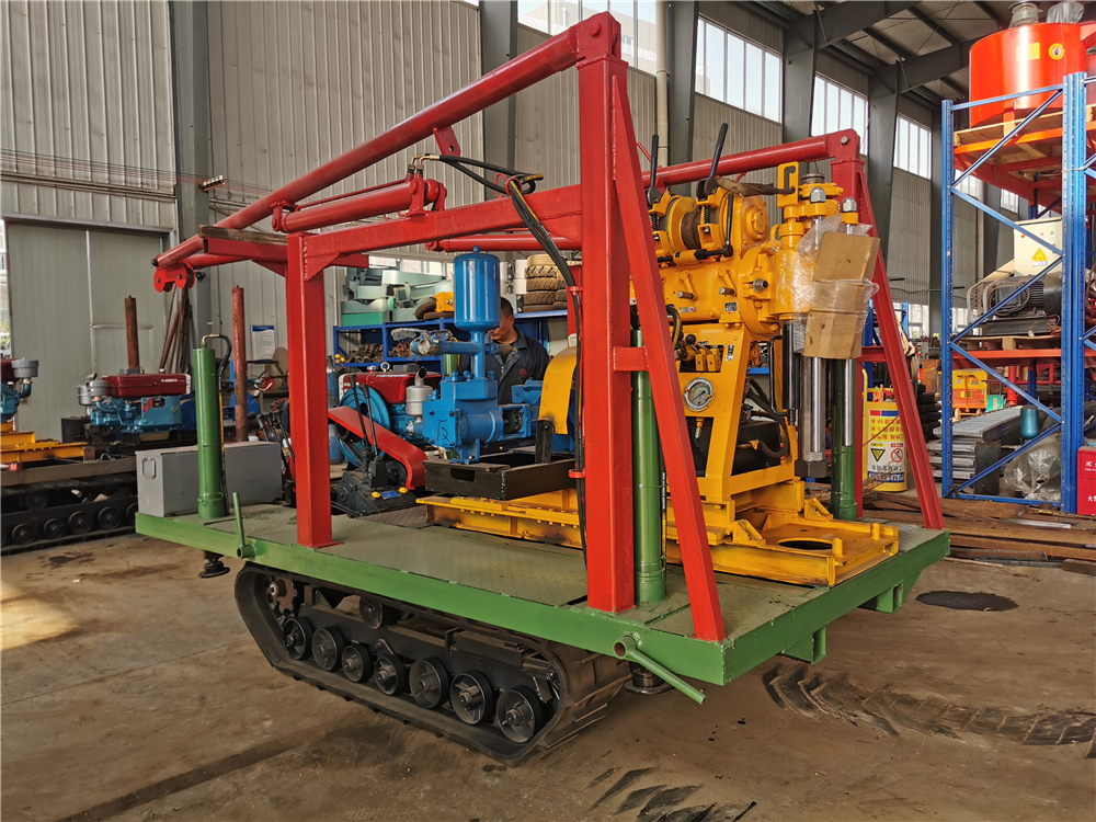 建議選配鉆機底座及鉆塔(根據需求選擇一項):1、T-SJ-3型三角架鉆塔;2、T2-SJ-3型兩輪拖掛三角架鉆塔;3、T-SJ-4型整體底座及四角架鉆塔;4、T4-SJ-4型四輪拖掛底座及四角架鉆塔;5、LP-4T-01-A型履帶底盤及四角架鉆塔;6、LP-4T-01-B型履帶底盤及四角架鉆塔;7、LP-4T-02-B型履帶底盤及井字形液壓起落鉆塔;8、LP-4T-02--B-STRZT型履帶底盤及人字形全液壓起落鉆塔;9、LP-4T-02-B-STZDT型履帶底盤及雙塔架折疊式液壓鉆塔;10、LP-4T-02-B-SST型履帶底盤及全液壓伸縮式鉆塔(高度可調)。備注:型號加-SG型為液壓升高型履帶底盤(上下卡車)。